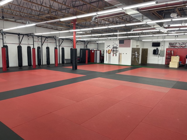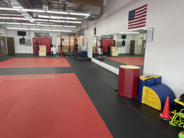 Our location features nearly 3000 SF of high quality fitness mats that could be used for a variety of training and fitness activities such as yoga, gymnastics, tumbling, dance, etc..., 15 heavy bags for kickboxing or cardio workouts, 20+ feet of mirrors on 1 wall and a fully equipped strength training/CrossFit/bootcamp area.